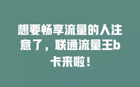 你是不是经常为流量不够用而烦恼?刷一会儿视频,流量就告急;玩几局游戏,套餐就超额。高额的流量费用,让你每个月的话费账单都惨不忍睹。别担心,联通流量王b卡就是你的救星!