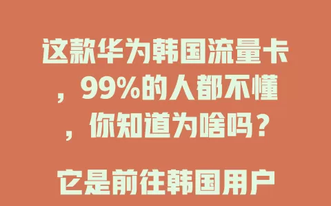 咱就是说出国到韩国,没个好用的流量卡可不行。这款华为韩国流量卡,好多人都不太明白咋回事儿。其实它真的是前往韩国用户的优质之选。