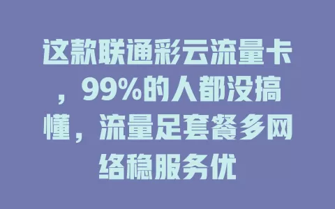 联通彩云流量卡流量超足,日常上网需求全搞定。我朋友之前总愁流量不够,刷视频、玩游戏都小心翼翼。用了联通彩云流量卡后,完全没这烦恼了。不管是刷剧追番,还是玩大型手游,都能尽情享受,无需担心流量告急。比如他追热门剧,一集高清剧大概几百兆,用这卡轻松看完一整部剧,全程流畅不卡顿。而且,即使同时开着多个应用程序,像一边刷短视频一边聊微信,流量也能稳稳支撑,网络始终保持流畅。这充足的流量,真的给上网体验带来了质的提升,让用户能随心所欲地畅游网络世界。