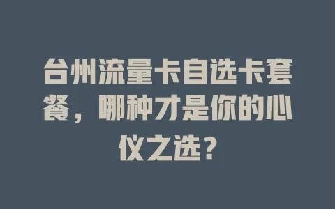 在选择台州流量卡自选卡套餐时,多做比较,结合自己的实际情况,就能选出最心仪的套餐,让上网更加畅快。
